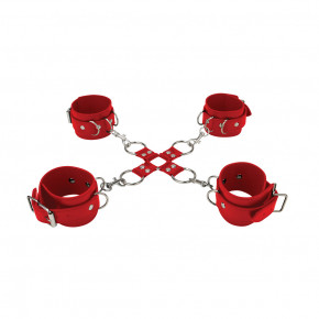 De Ouch! Reversible Hogtie is een set met handboeien en enkelboeien in de kleur rood.