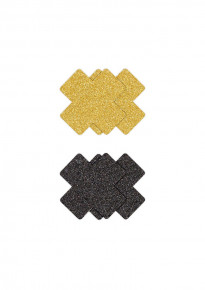 De Pretty Pasties Glitter Kruis Zwart/Goud zijn tepel accessoires in de vorm van een kruis.