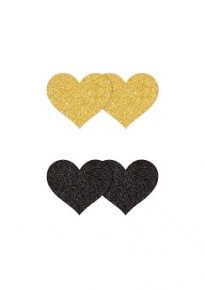 De Pretty Pasties Glitter Hart Zwart/Goud zijn tepel accessoires in de kleur zwart/goud in de vorm van een hartje.