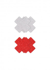 De Pretty Pasties Glitter Kruis Rood/Zilver zijn tepel accessoires in de vorm van een kruis.