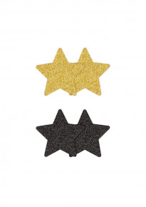 De Pretty Pasties Glitter Ster Zwart/Goud zijn tepel accessoires in de vorm van een ster.